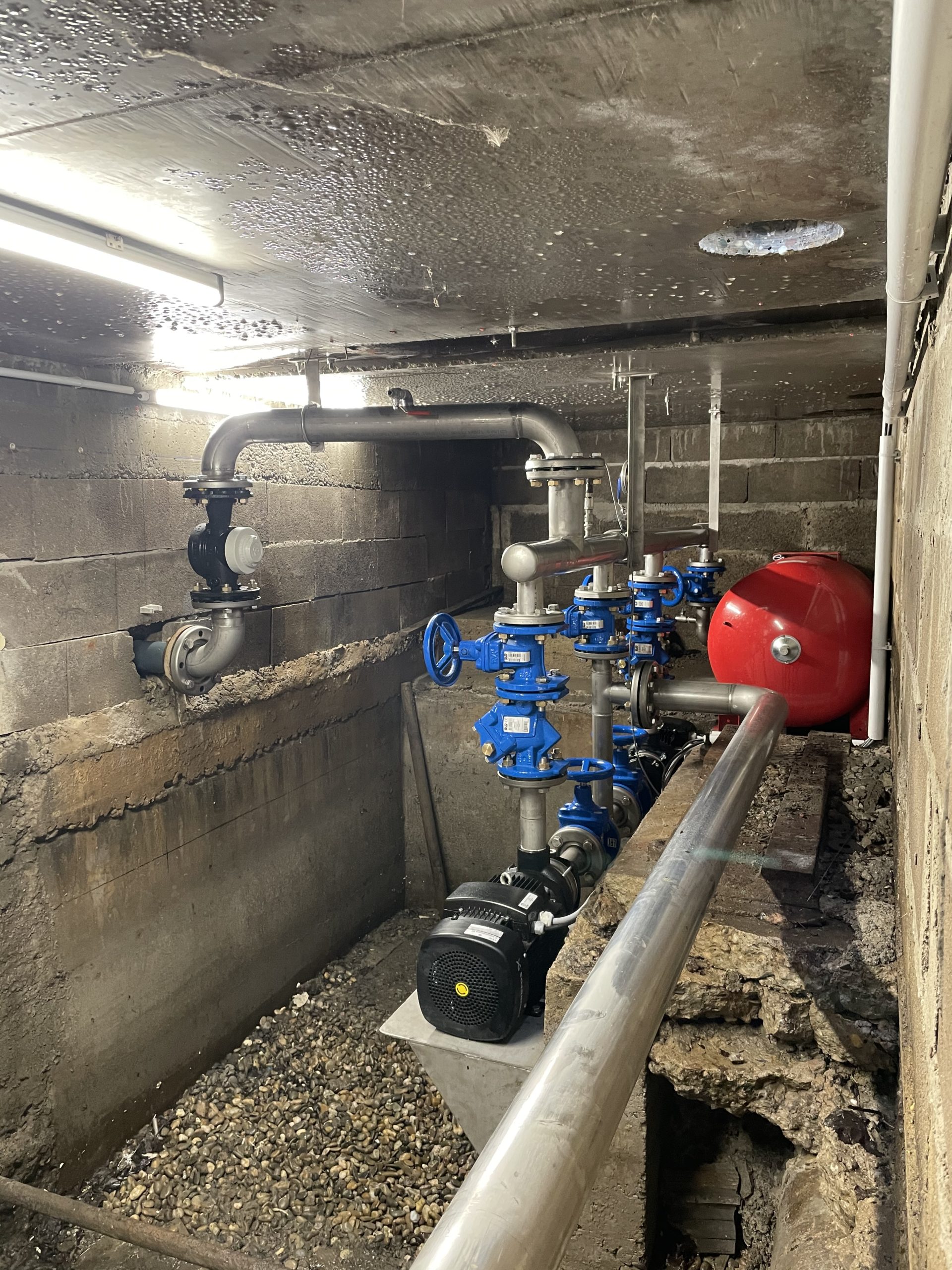 A l’origine la pompe pompait l’eau du canal pour alimenter uniquement la station de lavage des camions de transport de béton fini.