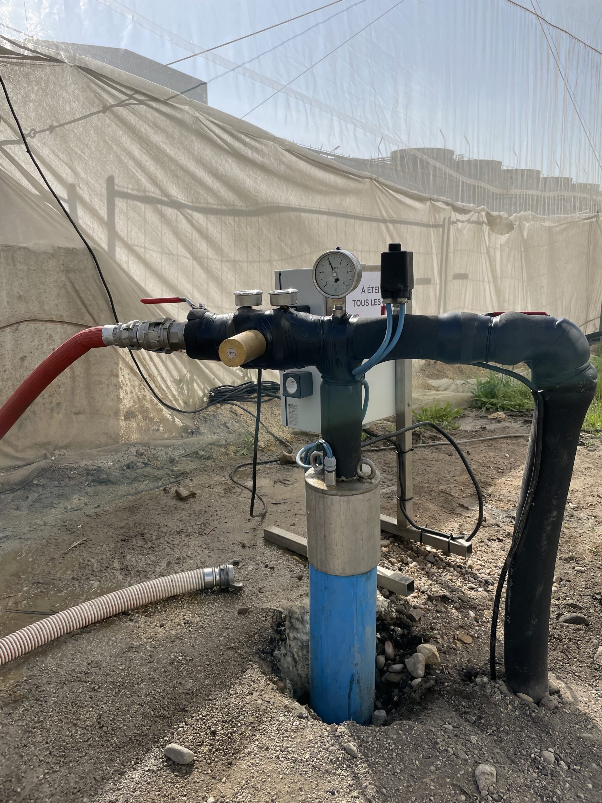 – création d’un réseau comprenant: 6 points d’eau sur une longueur totale de 400m, tous équipés de régulateurs de pression afin d’ajuster la pression au besoin ;